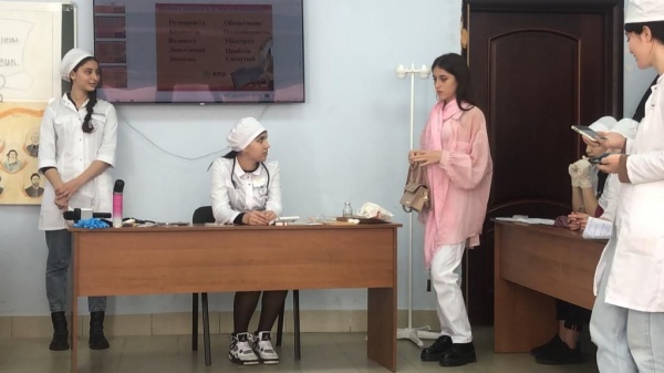 09.11.2022г в медицинском колледже ДГМУ студенты 1 курса , отделения «Акушерское дело» провели Брейн-ринг по русскому языку . Участвовали две команды , и чтобы установить порядок выступления команд были приглашены капитаны для жеребьевки . С приветственным словом выступила преподаватель русского языка Джаватова Гигили