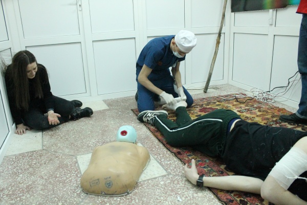 Затем, в ходе второго этапа, участники олимпиады должны были решать ситуационные задачи в симуляционном аккредитационном центре Даггосмедуниверситета. Каждый участник команды решал одну практическую задачу на одной из станций. Все манипуляции выполнялись участниками на манекенах и муляжах.