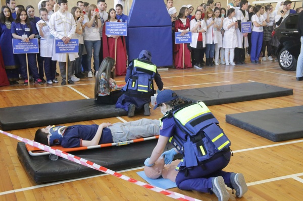 Третье конкурсное задание – интерактивная командная задача «Дорожно-транспортное происшествие». Этот этап проходил в спортивном комплексе ДГМУ. В ходе этого этапа участникам необходимо было оказать первую помощь, сортировать больных, определять очередность оказания помощи. Жюри олимпиады сформировано из представителей профессорско-преподавательского состава ДГМУ и представителей медицинских вузов РФ. Оценка конкурсных заданий осуществлялась в соответствии с утвержденными критериями. Победители и призеры олимпиады определялись по лучшим баллам выполнения конкурсных заданий.