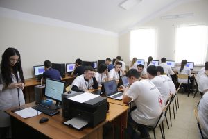 Затем, в ходе второго этапа, участники олимпиады должны были решать ситуационные задачи в симуляционном аккредитационном центре Даггосмедуниверситета. Каждый участник команды решал одну практическую задачу на одной из станций. Все манипуляции выполнялись участниками на манекенах и муляжах.