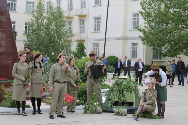 Студенты под руководством Баширханова Г.Б. подготовили концертную программу: ребята исполнили песни и прочли стихи на военную тему. Активисты комитета молодежи станцевали «Вальс победы». Студенты нашего колледжа 1курса 2 гр. отделения «Сестринское дело» вместе с куратором Юсуповой М.И. подготовили военно-патриотическую инсценировку «В землянке».