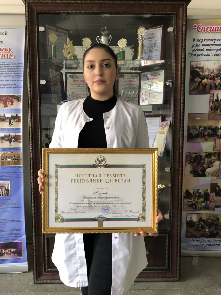 7 марта Глава Дагестана Владимир Васильев в Доме Дружбы вручил государственные награды выдающимся дагестанкам. Среди них оказалась и студентка Медицинского колледжа ФГБОУ ВО ДГМУ Минздрава России Казимова Джамиля Кунбуттаевна, занявшая 2 место на IV Национальном чемпионате профессионального мастерства среди инвалидов и лиц с ограниченными возможностями здоровья «Абилимпикс» 20-23 ноября в городе Москве