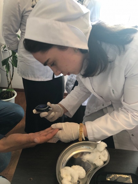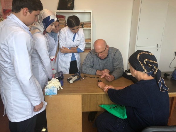 В субботу 29.09.2018г. группа студентов и преподавателей Медицинского колледжа ДГМУ во главе с директором колледжа М.Ш. Магомаевым посетили ФАП в селении Новая коса Бабаюртовского района. Контингент студентов состоял из победителей и призеров различных олимпиад, чемпионата WorldSkkills Russia, а также выпускного 4 курса лечебного отделения колледжа – будущие фельдшера. Среди преподавателей были врачи различных специальности: хирург, терапевт, педиатр, стоматолог и др. несмотря на то, что был выходной день наш визит вызвал большой интерес у жителей, на работу пришли все 5 сотрудников ФАП-а, студенты и преподаватели провели прием и консультацию больных, тяжелобольных посетили на дому. Студенты под руководством наставников снимали кардиограмму, определяли сахар в крови, АД, PS, проводили гемоксиметрию, полученные данные по Whatsapp были переданы ведущим специалистам ДГМУ, обратно получили обработанные заключения, которые в последующем внесены в амбулаторные карты больных.