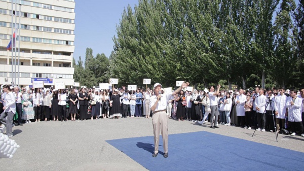 В праздник Дня знаний на территории учебно-лабораторного корпуса Дагестанского государственного медицинского университета прошла торжественная церемония посвящения в студенты первокурсников.