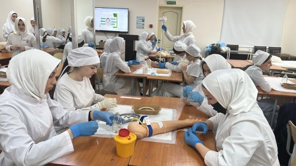 Студенты медицинского колледжа 3 курса специальности «Сестринское дело»проходят учебную практику в Научно-образовательном инновационном центре ДГМУ.