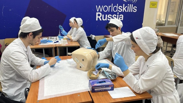 Студенты отрабатывают манипуляции на фантомах.