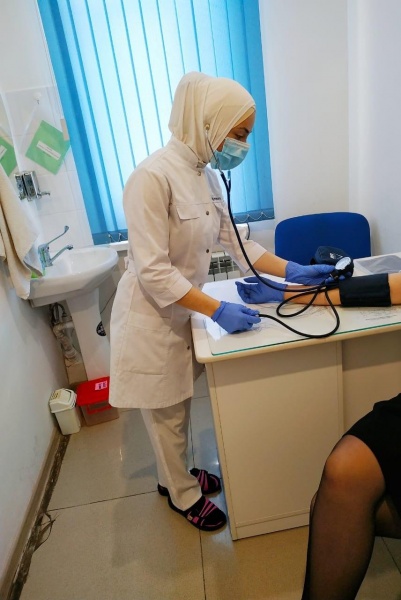 Мугутдинова Заира 3 курс 2 группа сестринское отделение. Проходит практику в Медицинском центре "Пульс".  Проводит измерение АД пациентке, забор крови, раскладывает лекарственные препараты.