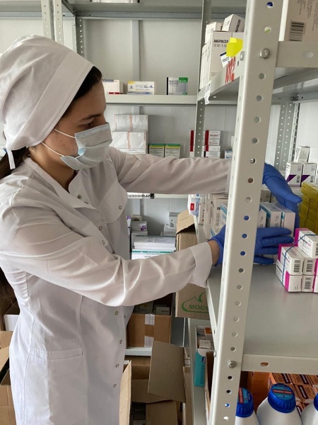 Мирзаева Мадина Ризвановна 4 курс 6 группа сестринское отделение. Проходит практику в ГБУ РД "Новолакской районной больнице". Раскладывает лекарственные препараты и проверяет срок годности лекарств.