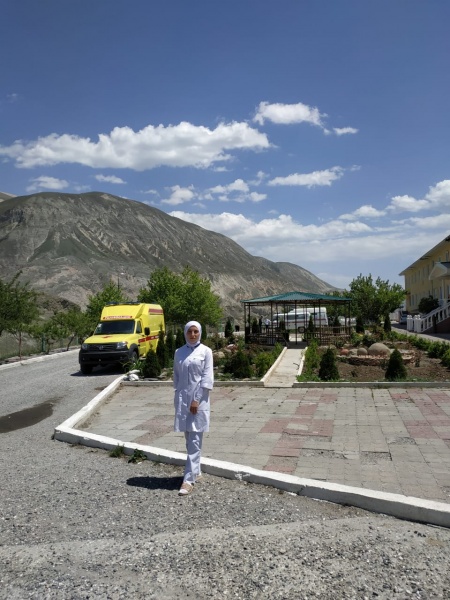 Малаева Патимат Ахмедовна ,студентка 4 курса Лечебного отделения ,проходит преддипломную практику в ГБУ РД «Кизлярской ЦРП»,работает на скорой .