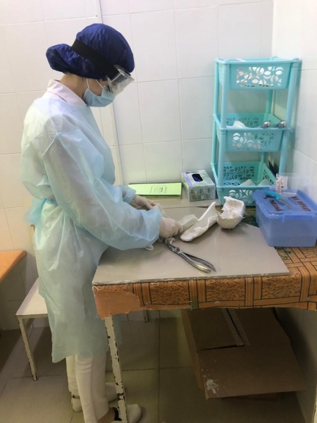 Абдурахманова Патимат, студентка 4 курса 3 группы сестринского отделения , проходит преддипломную практику в Детской Республиканской Клинической больнице им, Н.М.Кураева в приёмном отделении , проводит утилизацию гипсовой лангеты и бинта , а также санитарную обработку перевязочного кабинета .