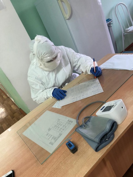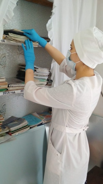 Абдуллаева Амина 4 курс 5 Группа. Проходит практику в районой больнице. Заполняет истории болезни и измеряет АД.