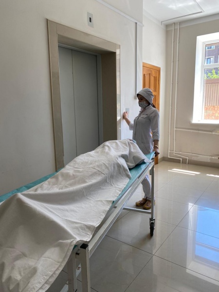 Я Исаева Патимат. Проходит практику в РОТЦ им.Цахаева , транспортирует пациента в операционное отделение.I
