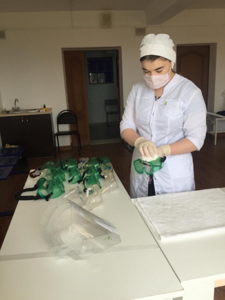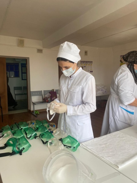 Мирзаева Мадина Ризвановна 4 курс 6 группа сестринское отделение. Помогает надевать СИЗ врачам и медсёстрам.