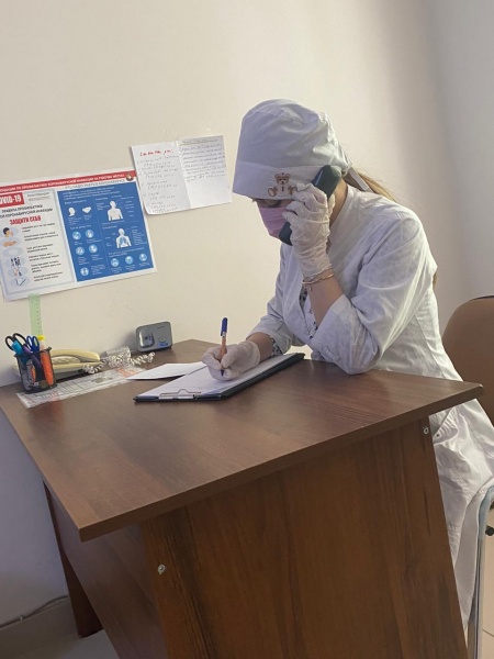 Мутаева Джавгарат Алибаговна ,студентка 4курса 2 группы леч/отд. Проходит практику на скорой "Евро-мед". На фотографии принимает звонки .