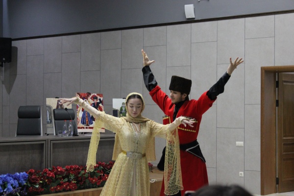На сцене были представлены творения живописи и традиционный танец «лезгинка», а после прозвучали песни на всех национальных языках народов Дагестана, воспевающие красоту и уникальность страны гор, гостеприимство и храбрость дагестанцев.