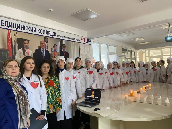 27 марта 2024г студенты медицинского колледжа ДГМУ специальности «Акушерское дело» почтили память минутой молчания, погибших при теракте в Крокус Сити Холле.