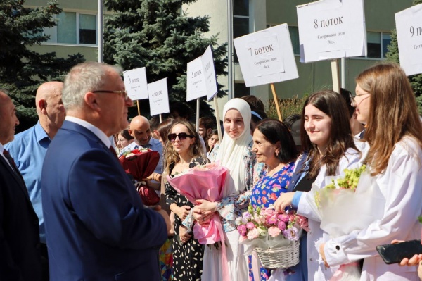 Студентов с важным в их жизни днем поздравил также советник ректора, Герой России Магомед Гимбатов. Он также отметил важность старательной учебе в медицинском вузе, пожелал будущим медицинским работникам успехов в учебе и дальнейшей профессиональной деятельности.
