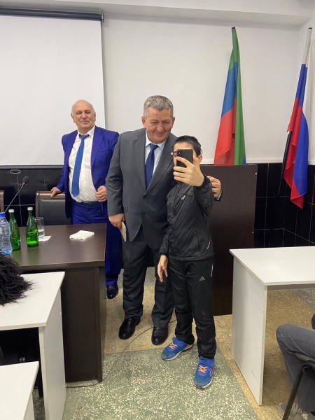 Среди заданных вопросов он выделил вопрос студентки 4 курса 1 группы сестринского дела Гереевой Карины "Как к вам относится ваш отец"и студента 2 курса 4 группы сестринского днла Ибрагомова Ибрагима " Что самое сложное в спорте" , за эти вопросы студенткы получили его книгу .